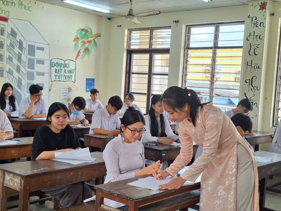“Tuy nhiên năm nay là năm đầu tiên học sinh lớp 12 học theo chương trình mới dự thi nên cũng có nhiều khó khăn như phải tổ chức đề thi riêng cho học sinh theo chương trình 2006 và 2018, gây áp lực cho khâu in sao, phân phối đề. Quy định mới về thời gian có mặt, phòng chờ, thu bài thi theo ca… đòi hỏi giám thị, giám sát phòng thi phải nắm chắc quy chế; sự thay đổi về hình thức thi và chương trình học có thể gây lo lắng cho học sinh ảnh hưởng đến tâm lý dự thi”, bà Thuận thông tin.