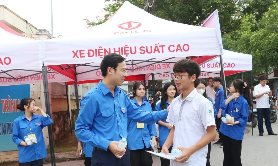 Tại điểm thi Trường THPT Hoàng Quốc Việt (TP Bắc Ninh), ngay từ sáng sớm, lực lượng công an, thanh niên tình nguyện có mặt sớm tổ chức phân luồng giao thông, bảo đảm an ninh trật tự, an toàn cho thí sinh và người nhà. Thanh niên tình nguyện hướng dẫn thí sinh gửi xe, đồ dùng cá nhân, chỉ dẫn phòng thi, hỗ trợ nước uống, động viên thí sinh vững tin bước vào kỳ thi.