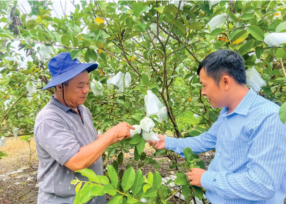 Cán bộ Liên minh HTX TP Cần Thơ thăm hỏi tình hình hoạt động của HTX mãng cầu Thới Hưng, xã Thới Hưng.