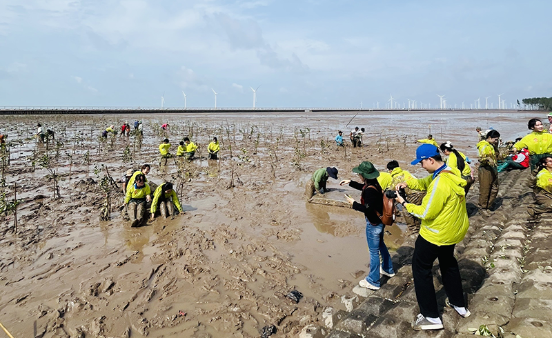 Người dân tham gia trồng và bảo vệ rừng ngập mặn tại xã Lai Hòa, TP Cần Thơ.