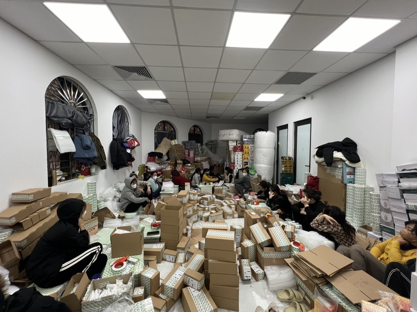 Hình ảnh kho hàng vi phạm của hot girl Mailystyle, thường xuyên livestream bán hàng trên mạng xã hội. Ảnh: Quyên Lưu