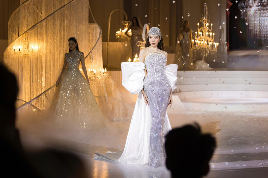 Mở màn cho tuần lễ thời trang, Lê Hoàng Phương giữ vị trí vedette cho bộ sưu tập cưới mới nhất của nhà thiết kế Chung Thanh Phong – một cái tên đình đám trong làng thời trang Việt. Với thần thái cuốn hút, kỹ năng catwalk điêu luyện và biểu cảm sân khấu đầy cảm xúc, nàng hậu ngay lập tức trở thành tâm điểm của đêm diễn mở màn.