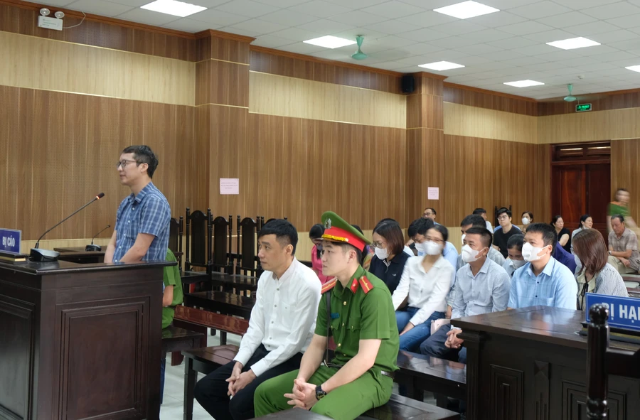 | Nguyễn Thế Hùng, nguyên Giám đốc VPĐKDĐ TP Sầm Sơn cùng 43 đồng phạm hầu toà. |