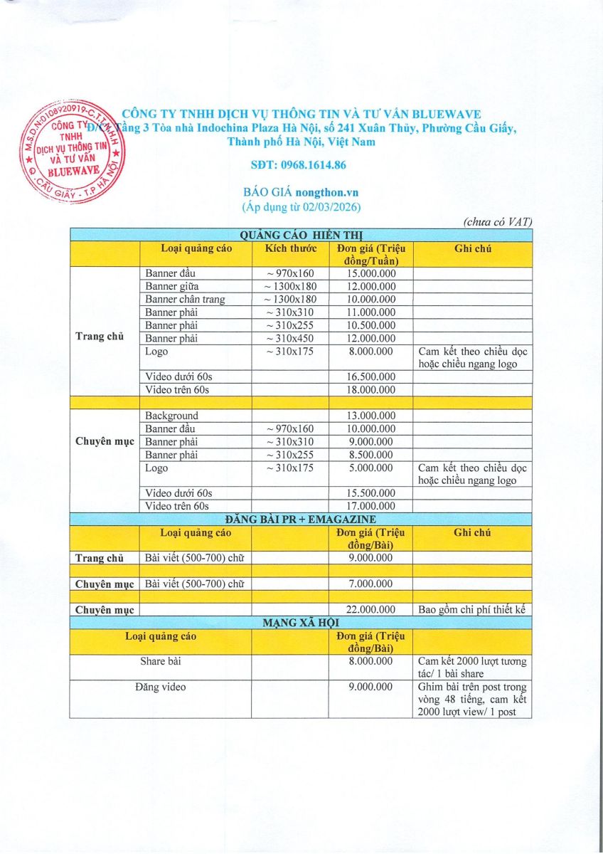 BÁO GIÁ QUẢNG CÁO