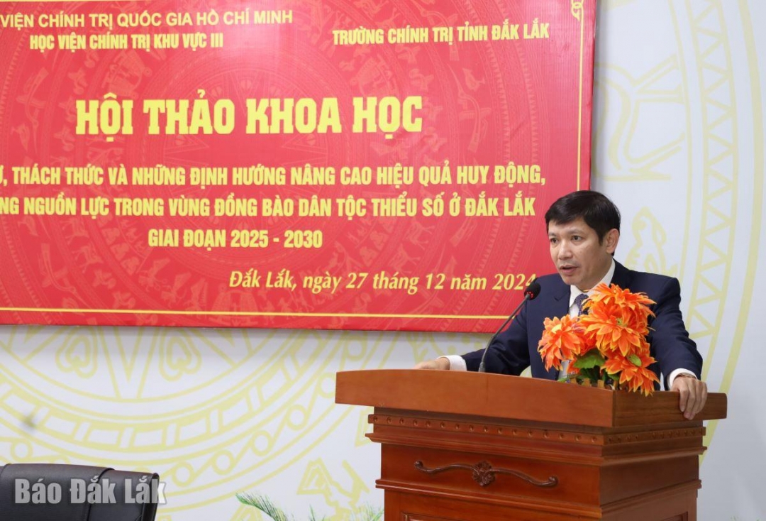 Sáng 27/12, Học viện Chính trị khu vực III - Học viện Chính trị Quốc gia Hồ Chí Minh phối hợp với Trường Chính trị tỉnh tổ chức Hội thảo khoa học với chủ đề Thời cơ, thách thức và những định hướng nâng cao hiệu quả huy động, sử dụng nguồn lực trong vùng đồng bào dân tộc thiểu số (DTTS) ở tỉnh Đắk Lắk giai đoạn 2025 - 2030.