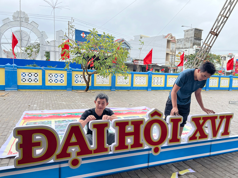 Công tác khánh tiết, trang trí ở các địa phương được tỉnh chọn tổ chức đại hội điểm cấp cơ sở đang được gấp rút hoàn thiện |