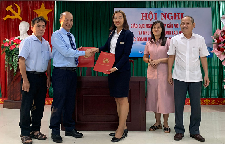 Dịp này, Trường cao đẳng Nghề Phú Yên ký kết thỏa thuận hợp tác đào tạo nghề với Chi nhánh Công ty CP Biển Phú Yên và Công ty TNHH Thương mại đầu tư Vĩnh Bảo - Wink hotel Tuy Hòa Beach và Hiệp hội Doanh nghiệp tỉnh.
