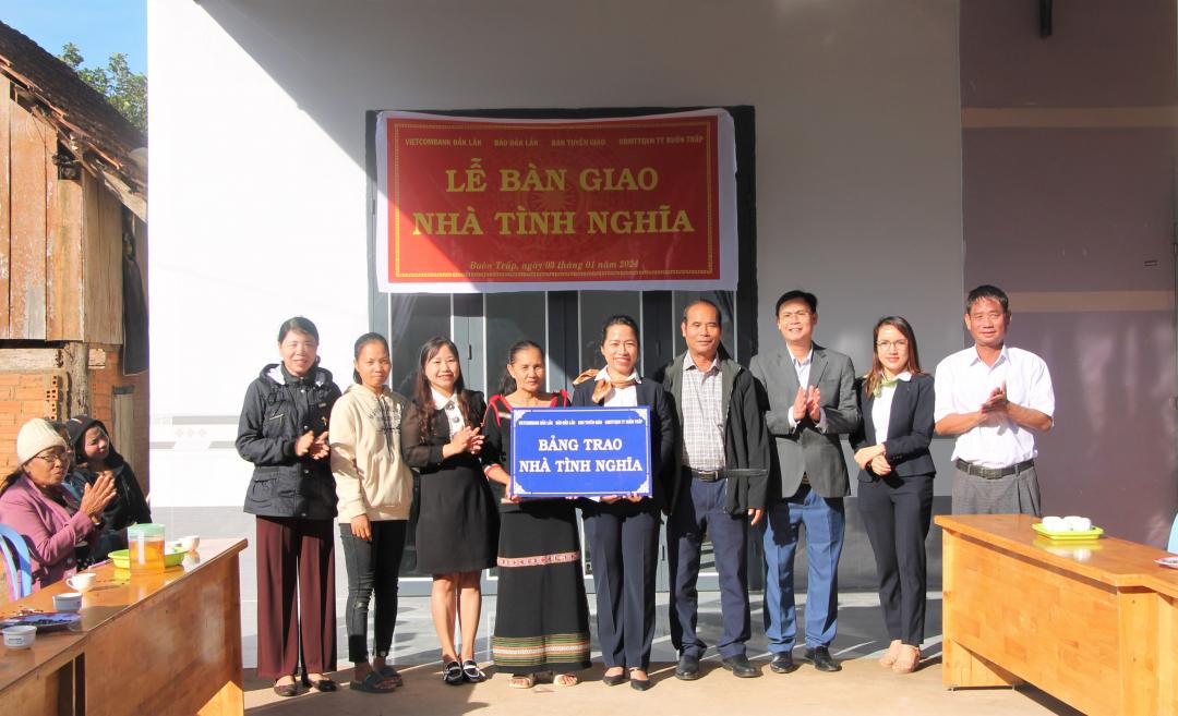 Lãnh đạo Vietcombank Đắk Lắk, Báo Đắk Lắk, Huyện ủy Krông Ana cùng các ban ngành, đoàn thể địa phương bàn giao nhà Tình nghĩa cho gia đình bà H'Bé Knul (buôn Trấp, thị trấn Buôn Trấp, huyện Krông Ana). |