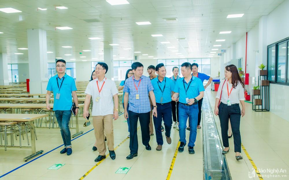 Công đoàn huyện Thanh Chương phối hợp với chính quyền tìm hiểu môi trường làm việc tại doanh nghiệp (ảnh chụp trước thời điểm bùng phát dịch). Ảnh: PVThông qua việc tổ chức Tháng Công nhân, Tháng Hành động về ATVSLĐ, công đoàn các cấp đẩy mạnh tuyên truyền, nâng cao ý thức trách nhiệm của doanh nghiệp và người lao động về nhận thức và tuân thủ về an toàn, vệ sinh lao động, thực thi có hiệu quả Luật ATVSLĐ và các văn bản hướng dẫn thi hành, xác định đây là nhiệm vụ quan trọng trong các mối quan hệ lao động.