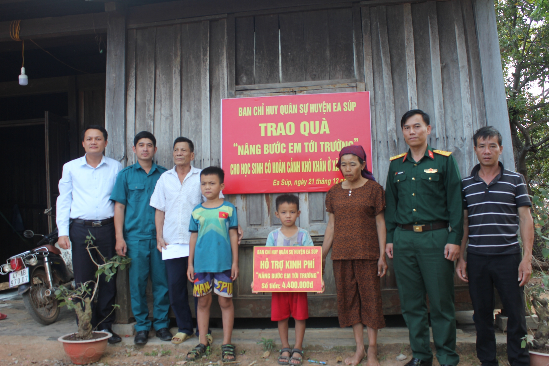 Ban Chỉ huy Quân sự huyện Buôn Đôn và huyện Ea Súp vừa nhận hỗ trợ 4 học sinh có hoàn cảnh khó khăn ở các xã biên giới theo Dự án “Cán bộ, chiến sĩ Quân đội nâng bước em tới trường” của Bộ Quốc phòng.