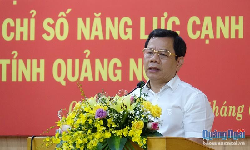 Năm 2021, Chỉ số CCHC (PAR INDEX) tỉnh Quảng Ngãi đạt 86,45/100 điểm, tăng 13,21%, xếp thứ 39/63 tỉnh, thành trong cả nước, tăng 24 bậc so với năm 2020. Chỉ số hiệu quả quản trị và hành chính công cấp tỉnh (PAPI) đạt 40,98 điểm, xếp vị thứ 43/63 tỉnh, thành trong cả nước, tăng 17 bậc so với năm 2020. Chỉ số năng lực cạnh cấp tỉnh (PCI) tỉnh Quảng Ngãi đạt 62,97 điểm, xếp hạng 45/63 tỉnh, thành, giảm 0,23 điểm và giảm 9 bậc so với năm 2020.