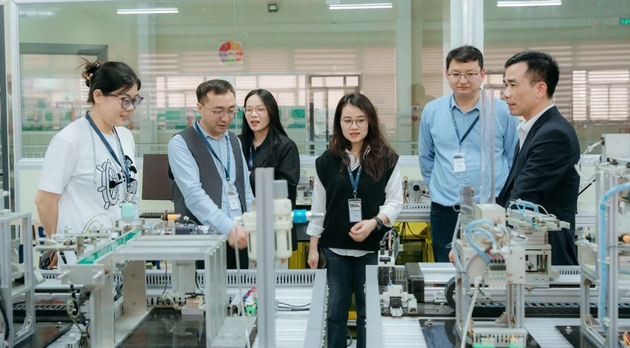 Đoàn cán bộ của đối tác Trung Quốc tới Trường Cao đẳng Lý Thái Tổ (Bắc Ninh) trao đổi về hợp tác đào tạo. Ảnh: Đình Tuệ |