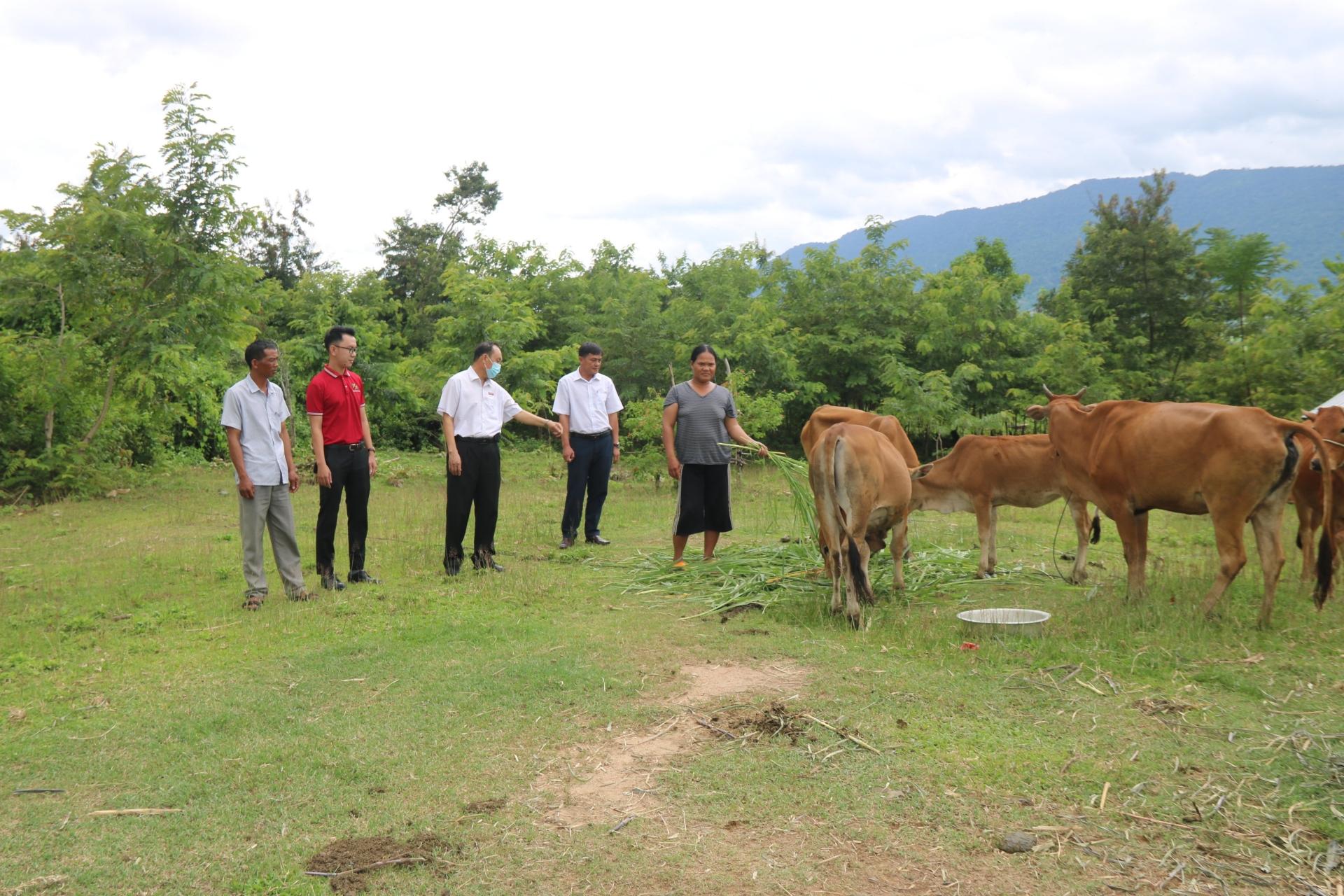 Cán bộ Agribank Đắk Lắk tìm hiểu về hiệu quả vốn vay của người dân buôn Pa. |
