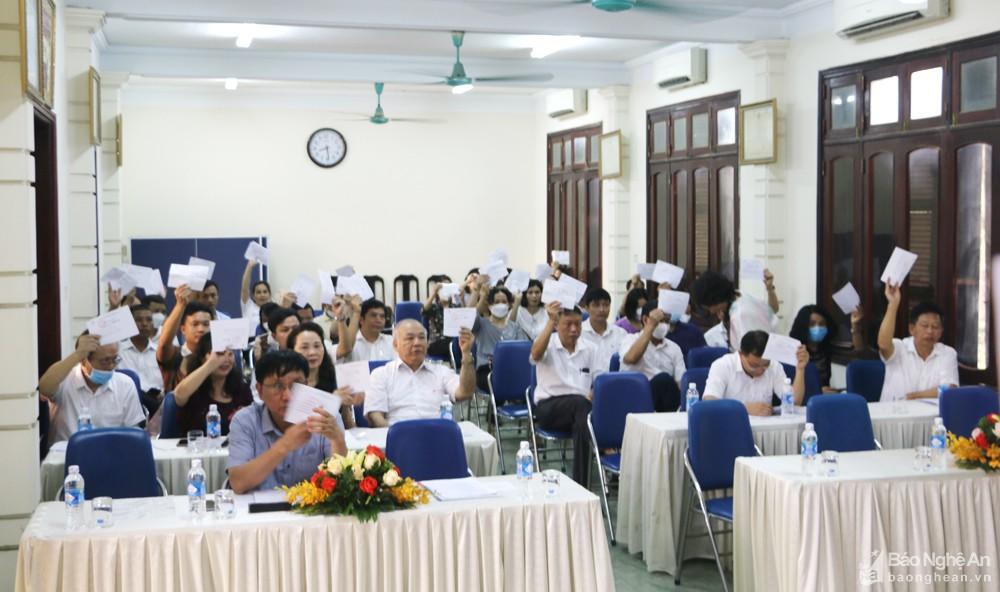 Các cổ đông đại diện và đại cổ đông Công ty CP Trung Đô biểu quyết thông qua các chỉ tiêu tại Đại hội đồng cổ đông năm 2022. Ảnh: Nguyễn Hải