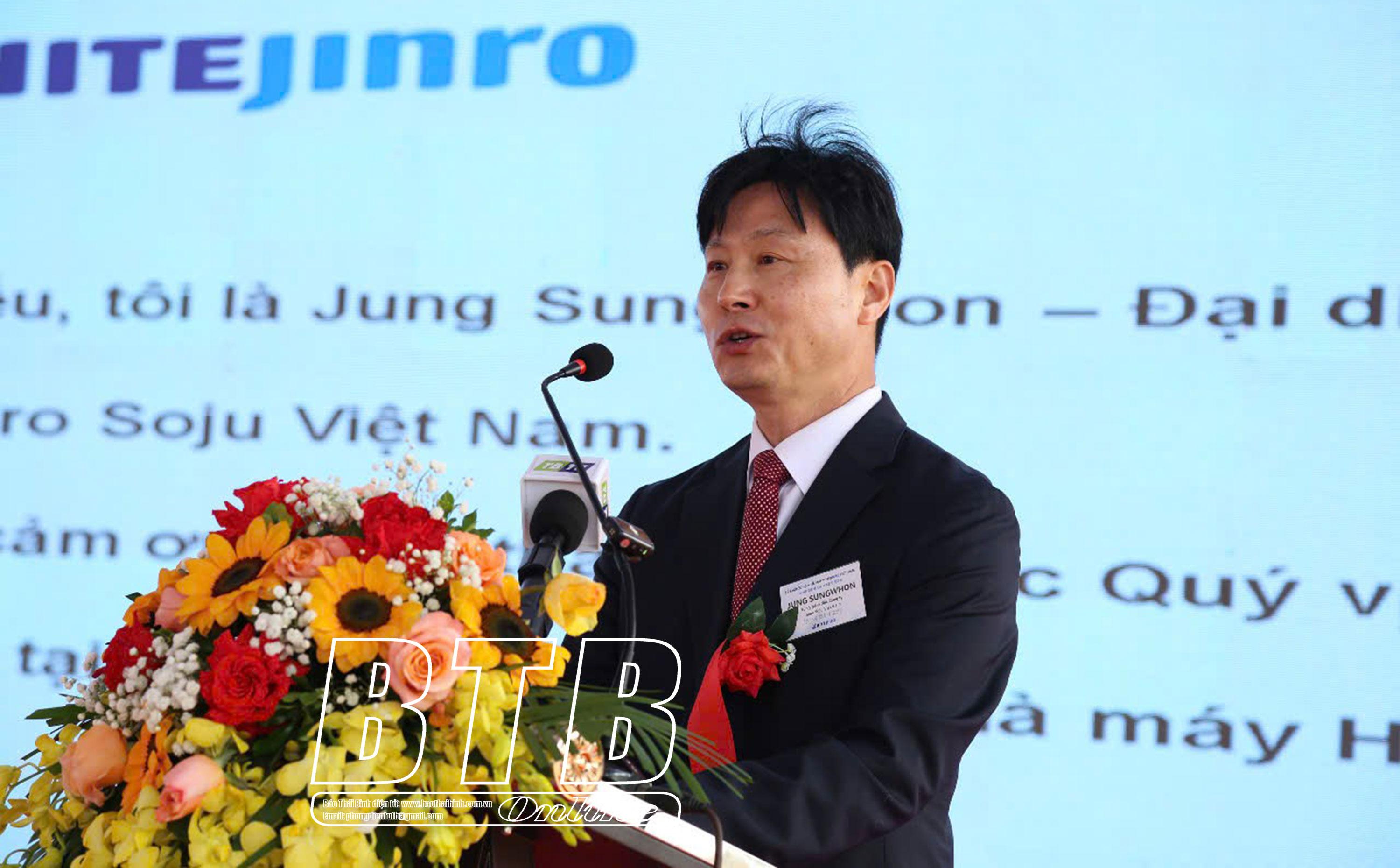 Ông Jung Sungwhon, Tổng giám đốc Công ty TNHH Jinro Soju Việt Nam phát biểu tại buổi lễ.