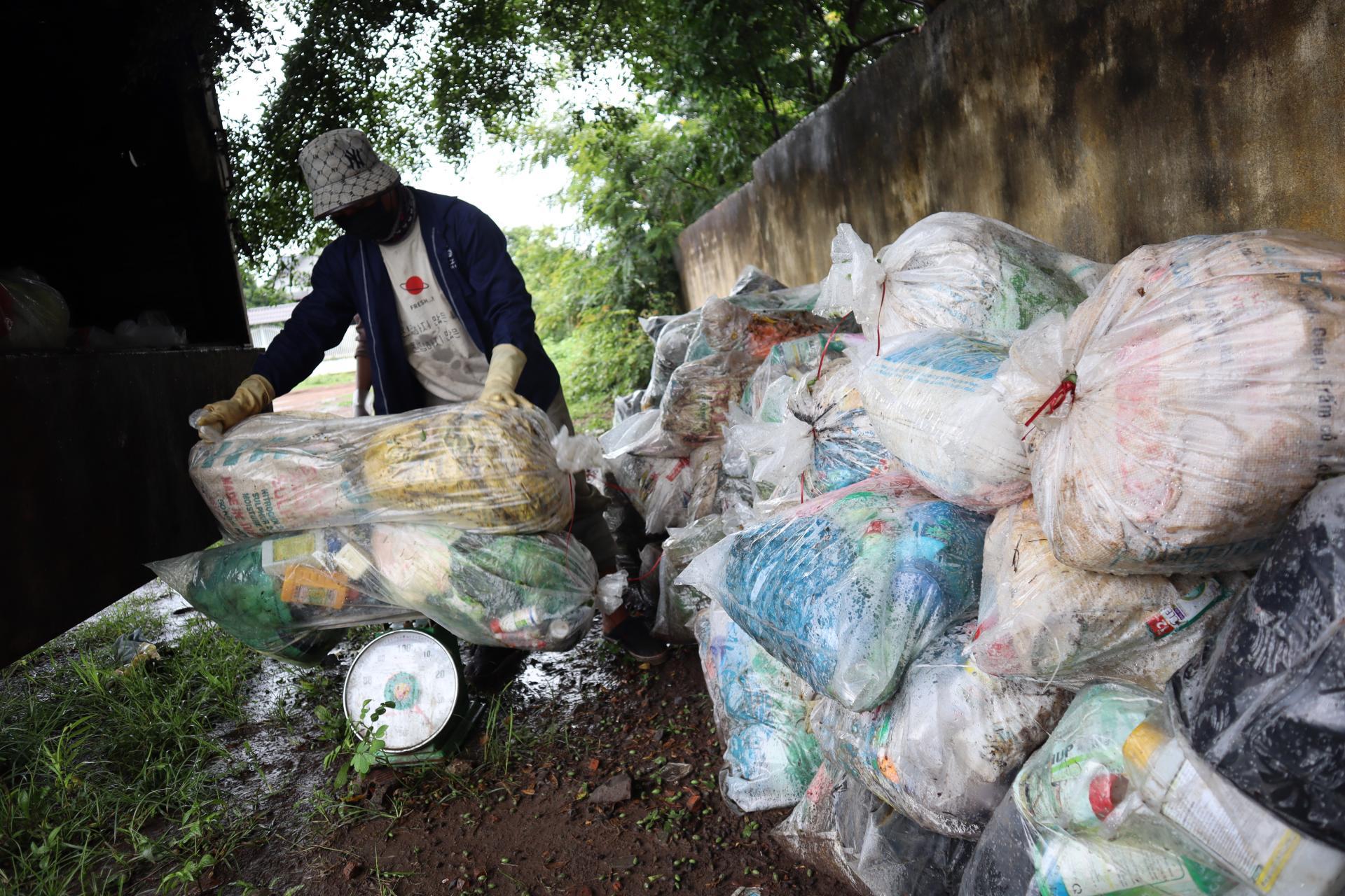 Thu gom rác thải độc hại để vận chuyển đến nhà máy xử lý tại tỉnh Quảng Nam. |
