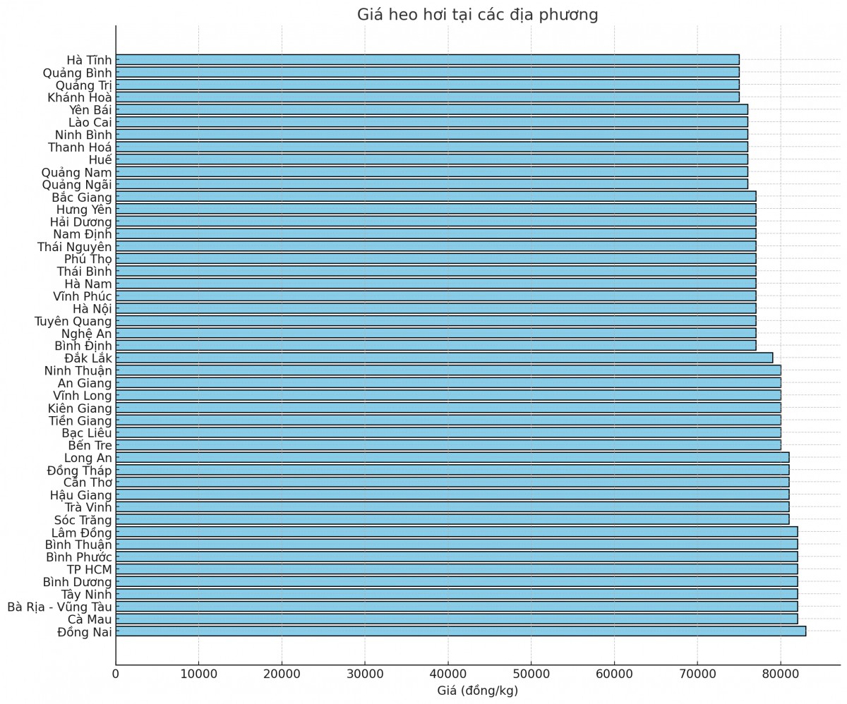 Trong khi đó, khu vực Miền Trung - Tây Nguyên chứng kiến giá heo hơi đi ngang, duy trì ổn định trong khung 75.000 - 82.000 đồng/kg. Lâm Đồng và Bình Thuận hiện có mức giá cao nhất khu vực, đạt 82.000 đồng/kg, trong khi mức thấp nhất 75.000 đồng/kg được ghi nhận tại Hà Tĩnh, Quảng Bình, Quảng Trị và Khánh Hòa.