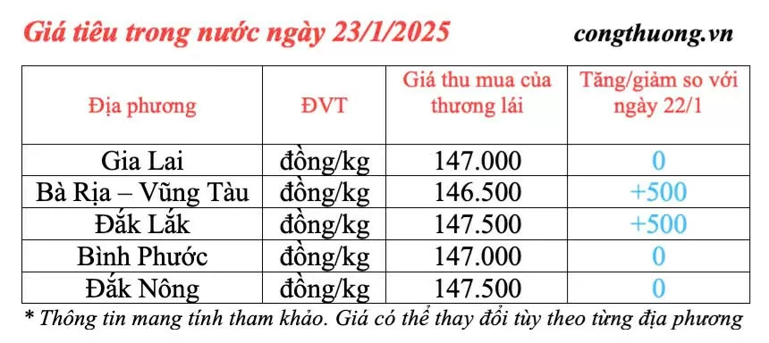 Giá tiêu trong nước cập nhật ngày 23/1/2025