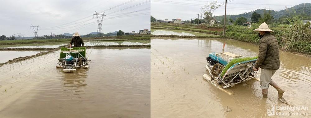 Cấy lúa bằng máy ở xã Nghĩa Trung, Nghĩa Đàn. Ảnh: Văn TrườngNếu như trước đây, để cấy hơn 6 sào ruộng, gia đình bà Trần Thị Minh ở xã Thọ Thành, Yên Thành phải mất hơn 10 ngày. Các khâu gieo mạ, nhổ mạ, cấy đều làm thủ công nên bà Minh rất vất vả. Song từ vụ Xuân năm 2022, bà không còn phải lo lắng, tất bật mà chỉ việc đứng trên bờ ruộng theo dõi máy cấy làm thay. Bà Minh cho biết: “Cấy bằng máy, tôi không phải đi tìm người cấy thuê. Chi phí cấy thuê khá cao 350.000 đồng/ngày, trong khi chỉ chưa đầy 2 tiếng đồng hồ hơn 6 sào cấy máy đã được cấy xong; chi phí cấy máy rẻ chỉ từ 140.000 - 150.000 đồng/sào.