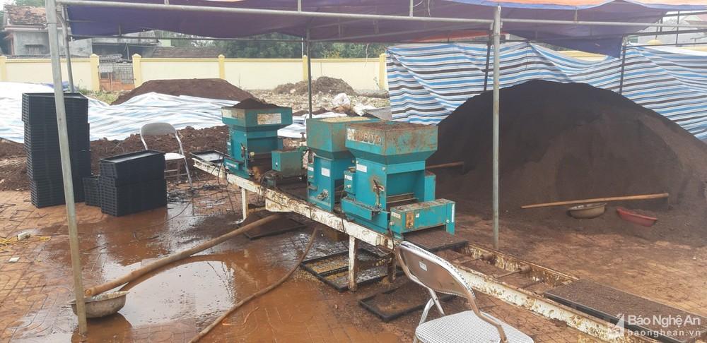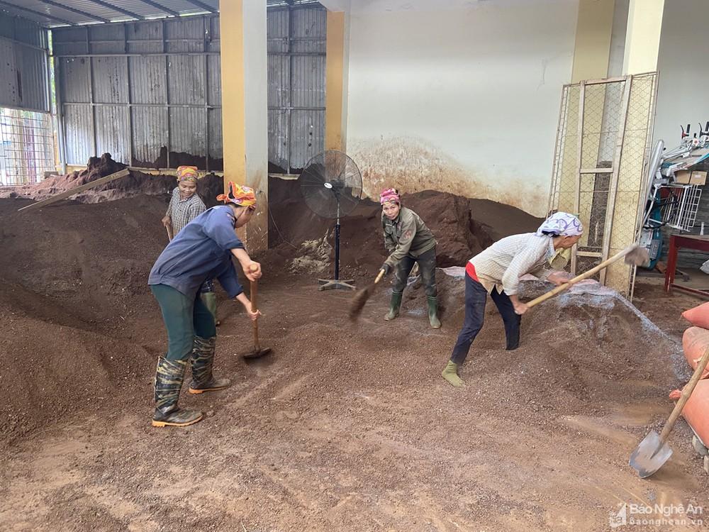 Trộn nguyên liệu để làm mạ khay ở HTX Nông nghiệp dịch vụ tổng hợp Thọ Thành, Yên Thành. Ảnh: Văn TrườngNguyên nhân sản xuất mạ khay gieo cấy lúa bằng máy giảm do trở ngại lớn nhất là sản xuất mạ khay. Để sản xuất mạ khay cần diện tích mặt bằng lớn nhưng lại chỉ sử dụng theo thời vụ. Các công cụ hỗ trợ sản xuất như giàn gieo, khay mạ, thiết bị gieo, giá thể... có kinh phí đầu tư lớn, trong khi thời gian khai thác chỉ từ 20-30 ngày/năm.