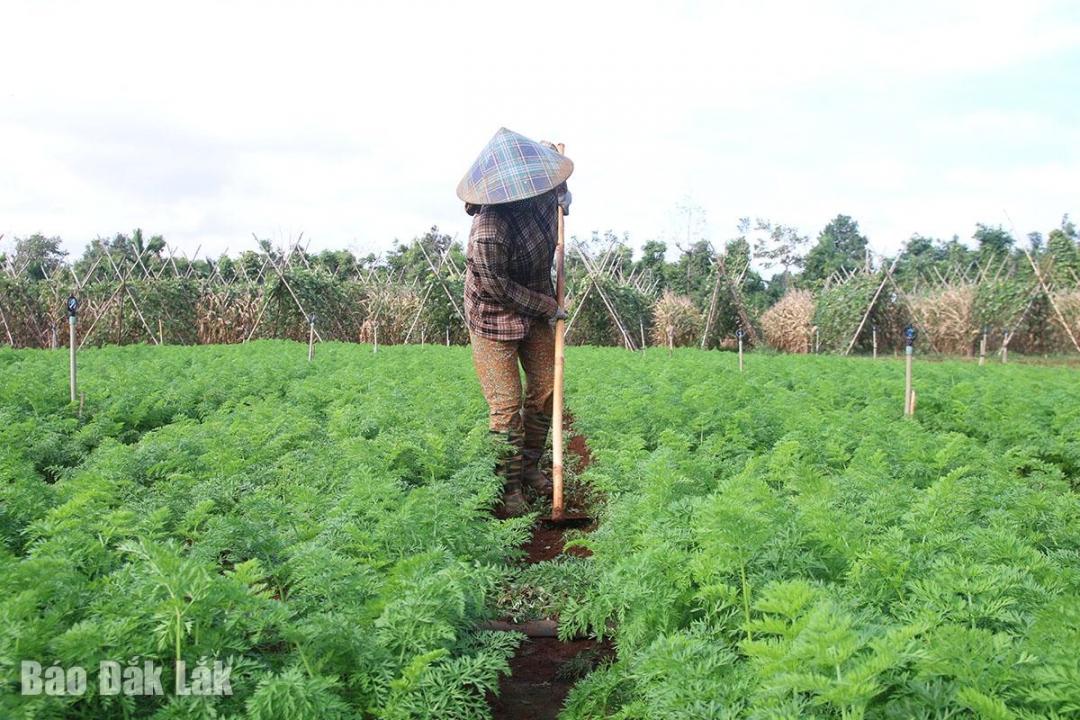 Ông Nguyễn Hoàng Nam (thôn Mới, xã Hòa Hiệp, huyện Cư Kuin) cho biết, năm 2020, sau khi gia nhập HTX Rau an toàn công nghệ cao Hòa Hiệp, ông được tham gia các lớp tập huấn về sản xuất rau an toàn và tham quan nhiều mô hình kinh tế hiệu quả. Nhờ đó, ông đã nắm vững kỹ thuật canh tác để áp dụng cho hơn 1 ha đất trồng rau màu của gia đình.