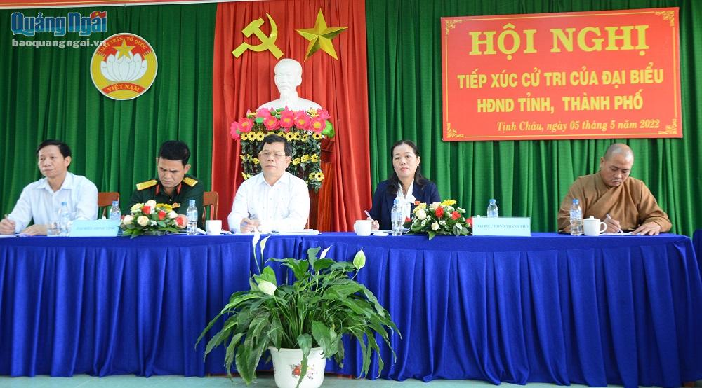 Lãnh đạo xã Tịnh Châu và TP.Quảng Ngãi đã giải đáp một số kiến nghị, thắc mắc của cử tri. Chủ tịch UBND tỉnh Đặng Văn Minh trân trọng cảm ơn các ý kiến tâm huyết của cử tri, đồng thời giải đáp, làm rõ một số vấn đề cử tri quan tâm, trong đó có chính sách hỗ trợ cho xã đạt chuẩn nông thôn mới, xã đạt chuẩn nông thôn mới nâng cao; quy trình cấp phép khai thác khoáng sản…