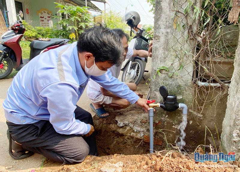 Anh Trần Duy Linh, nhân viên kỹ thuật, quản lý Hệ thống cấp nước sinh hoạt Đức Hòa - Đức Thạnh (Mộ Đức) cho biết, hơn một tháng qua, trung bình mỗi ngày tôi lắp đặt đồng hồ, cấp nước cho 3 - 5 hộ. Hiện số hộ đăng ký dùng nước sạch ngày càng tăng lên, tôi sẽ cố gắng lắp đặt sớm để người dân có nước sạch sử dụng.