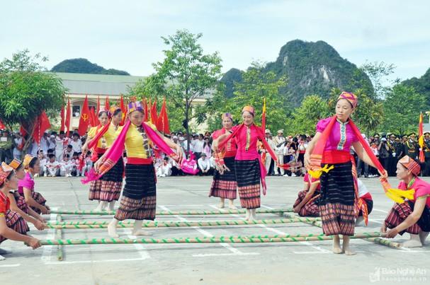 Đội văn nghệ bản Cằng, xã Môn Sơn (Con Cuông) vui múa sạp trong ngày hội. Ảnh tư liệu: Công Kiên