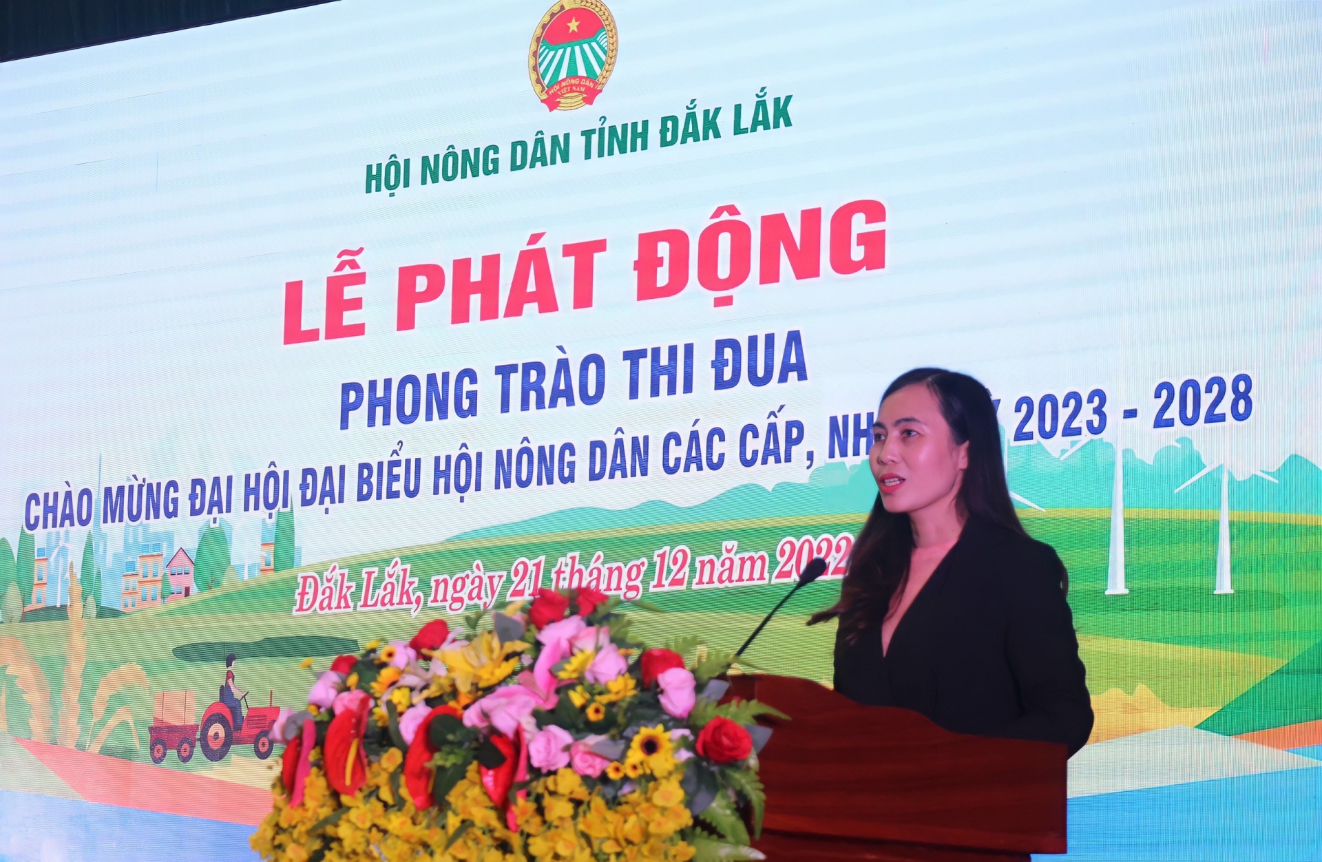 Chủ tịch Hội Nông dân tỉnh Lại Thị Loan phát động thi đua. |