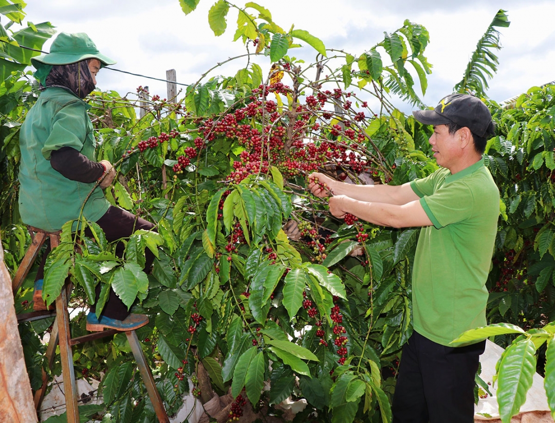 Không chỉ chăm lo phát triển kinh tế gia đình, anh Hoàng Văn Giáp (thôn 10B, xã Cư Amung, huyện Ea H'leo) còn tạo việc làm cho nhiều lao động tại địa phương. |