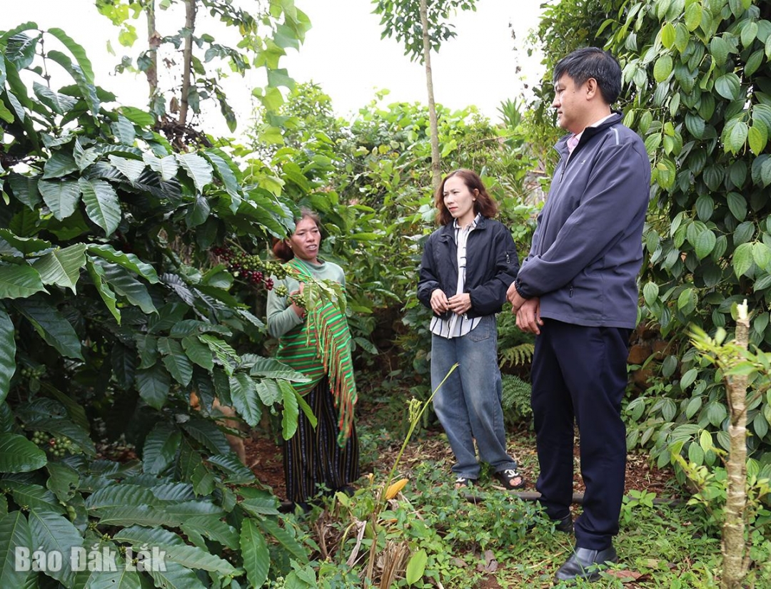 Cán bộ Phòng giao dịch Ngân hàng CSXH huyện Krông Búk kiểm tra hiệu quả sử dụng vốn vay của một khách hàng trên địa bàn. |