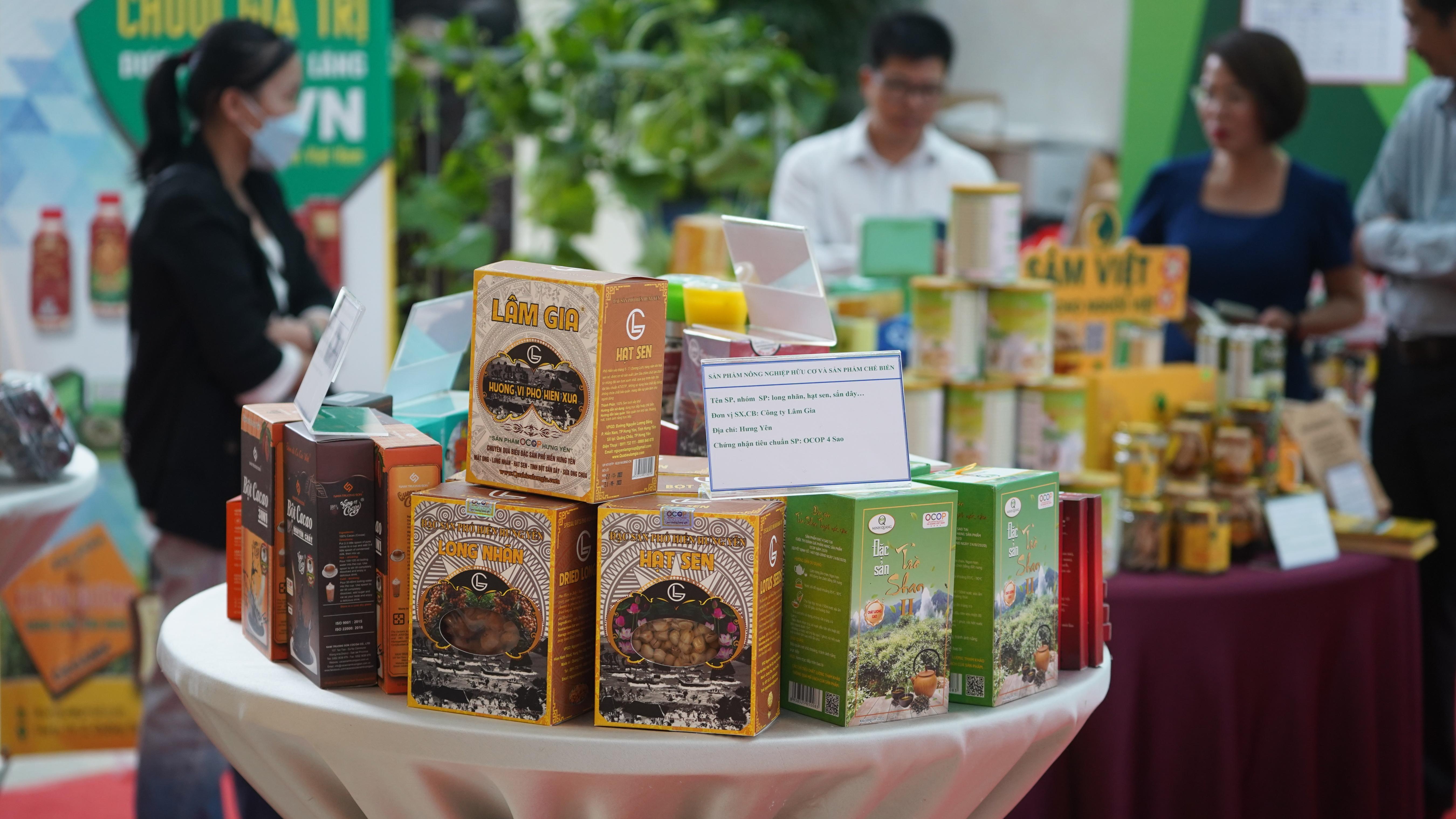 Triển lãm các sản phẩm nông nghiệp hữu cơ bên lề hội thảo.