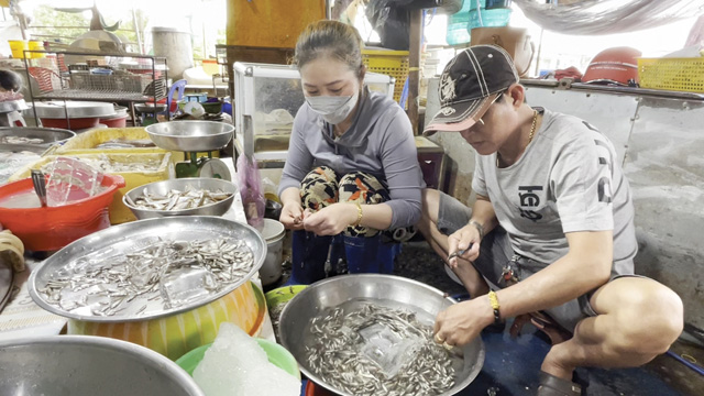 Cá linh non - đặc sản mùa nước nổi được bày bán tại các chợ. Ảnh: TRẦN TRỌNG TRUNG