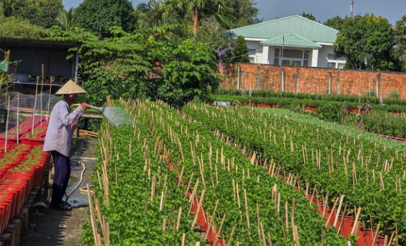 Về hoa kiểng, cùng với việc trồng hơn 2 triệu chậu các loại (tương đương cùng kỳ năm trước), nông dân cũng trồng 9ha hoa trên nền đất. Các loại hoa kiểng được trồng chủ yếu là cúc, vạn thọ, cát tường, lan, mai… Về rau màu, nông dân xuống giống khoảng 5.200ha. Trong đó, chủ lực là dưa hấu với 1.200ha (sản lượng 18.000 tấn), hành tím 2.500ha (sản lượng 35.000 tấn) và các loại rau màu khác như dưa leo, khổ qua, bắp cải, nấm rơm...