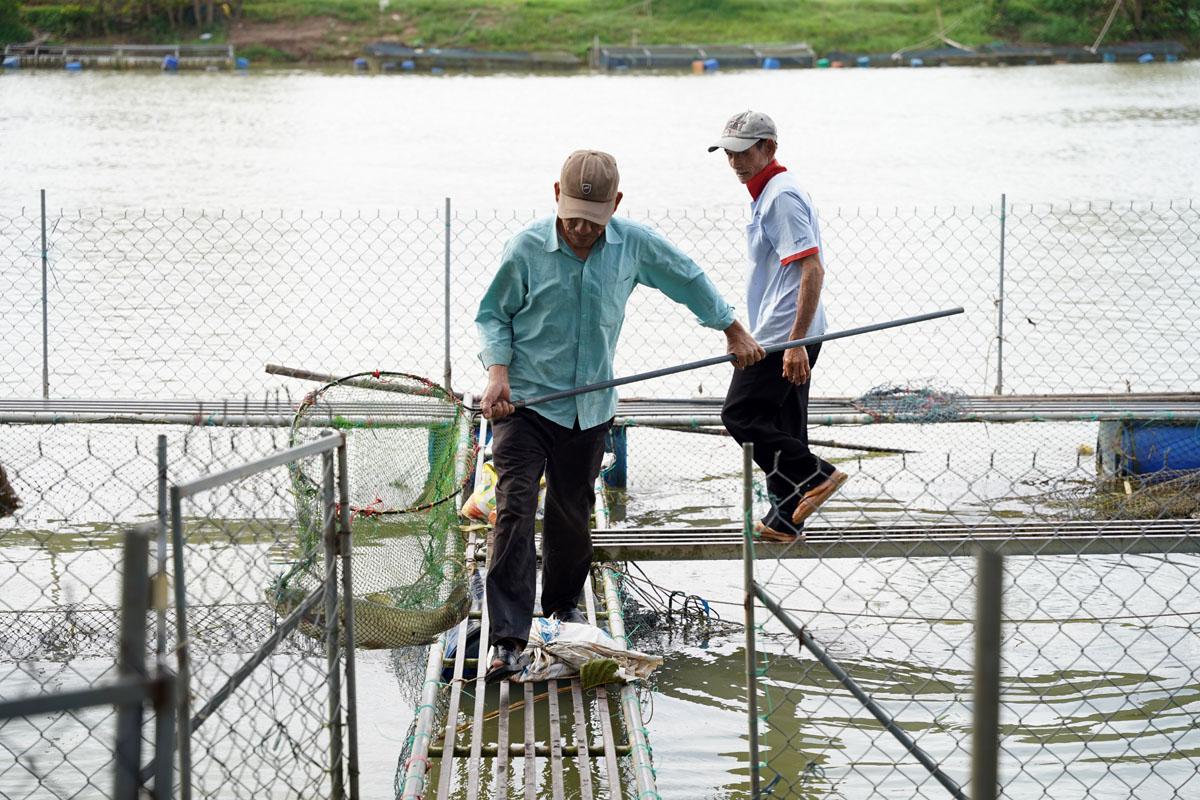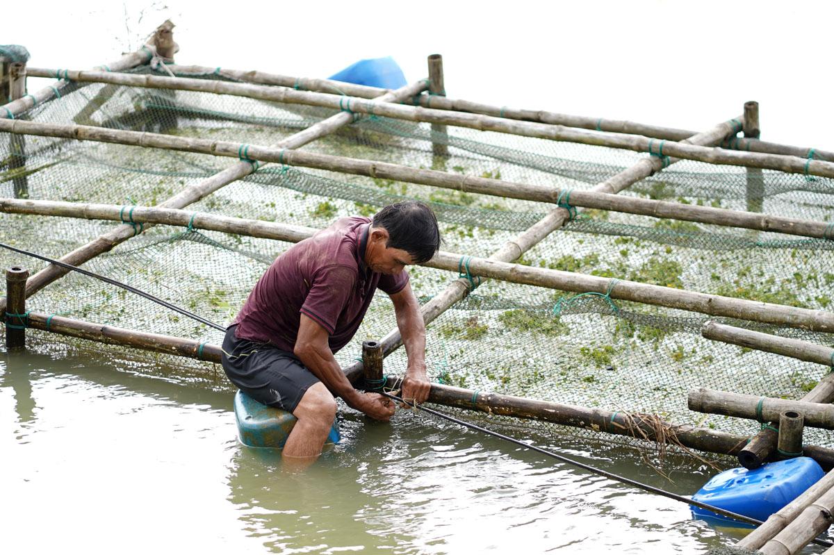Nghe dự báo mưa lớn, nước dâng, các hộ nuôi cá đồng loạt kiểm tra lồng bè