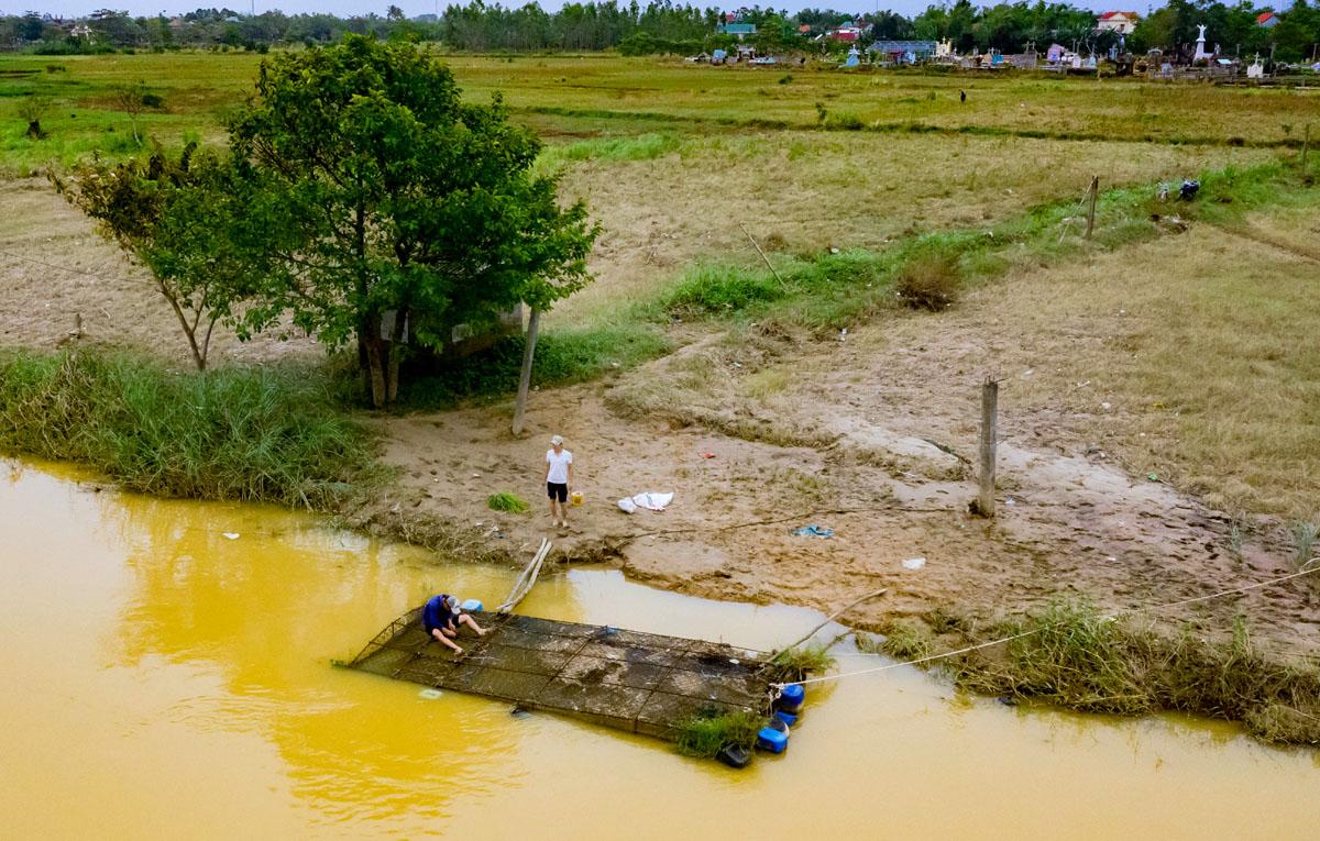 Ông Trương Văn Huy, một người nuôi cá lồng trên sông Bồ âu lo vì sức tiêu thụ cá đang chậm. Tầm tới gần tết người nuôi cá mới đồng loạt thu hoạch nên chừ bằng mọi cách phải bảo vệ thành quả lao động. “Sức mua đang chậm nên muốn bán bớt cũng khó. Mỗi lần mưa lụt xong các đồng cỏ đều ngập chết. Việc kiếm thức ăn bổ sung cho cá khó hơn”, người đàn ông 10 năm gắn bó với nghề cá lồng, nói.