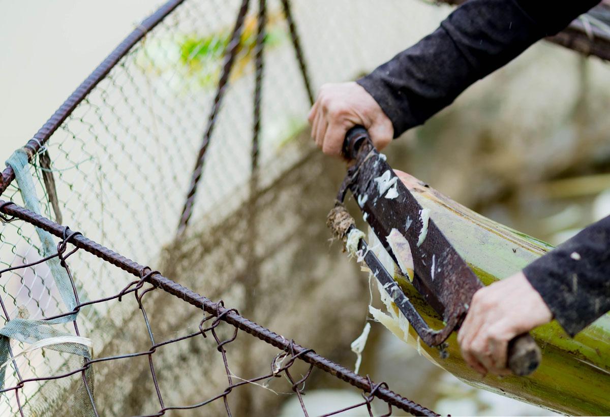 Vá những chỗ lồng bị rách, tránh cá thất thoát khi mưa, lũ