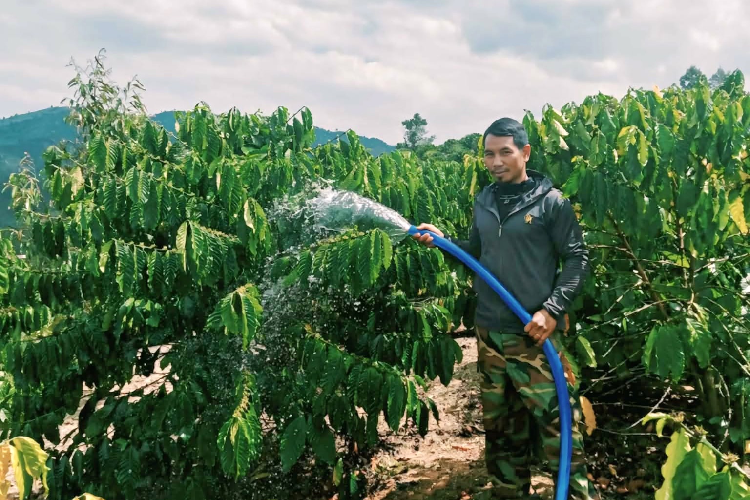 Một hộ trồng cà phê khác, chị Huỳnh Thị Mai ở xã Ninh Gia tâm sự: “Mới đầu mùa khô, nguồn nước đang dồi dào, việc tưới nước cho cà phê cũng hết sức thuận lợi”. Theo chị Mai, sau thu hoạch, cây cà phê cần được chăm sóc kỹ. Bởi không như một số loại cây trồng khác, cây này chăm sóc thật kỹ thì mới có ăn, năng suất trái mới cao, mùa vụ mới no đủ. Vì vậy, ngay sau thu hoạch mùa vụ 2025, gia đình chị Mai đã khẩn trương bắt tay vào việc chăm sóc rẫy cà phê. Chị Mai cho biết, mỗi giai đoạn sinh trưởng của cây cà phê cần phải có quy trình chăm sóc phù hợp. Ở giai đoạn đầu mùa khô, cây cà phê cần được cung cấp đủ dinh dưỡng và nước để bước vào thời kỳ phân hóa mầm hoa, nở hoa và nuôi trái non. “Ở thời điểm sau thu hoạch, gia đình tôi thường sử dụng phân vi sinh, phân hữu cơ, phân chuồng đã ủ hoai mục bón cho cây cà phê giúp cây nhanh lấy lại sức. Việc bón các loại phân này còn giúp tăng độ tơi xốp cho đất, đồng thời gia tăng các hệ sinh vật có lợi trong đất và hạn chế những mầm bệnh hại trong đất, giúp cây cà phê hấp thụ tốt chất dinh dưỡng”, chị Mai nói.