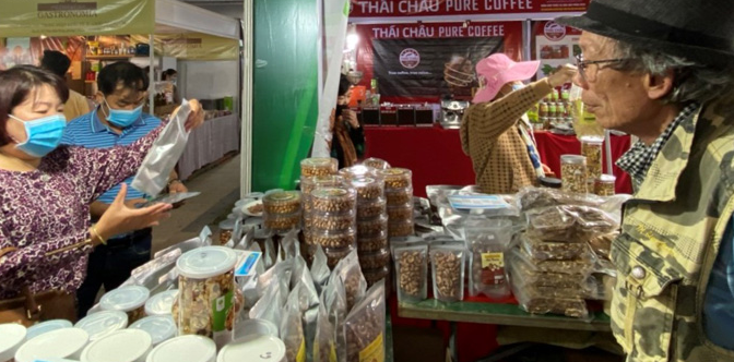 Các dòng sản phẩm hạt điều OCOP 4 sao thương hiệu Lê Gia thu hút khách hàng tại Hội chợ thương mại Festival Hoa Đà Lạt năm 2022 |