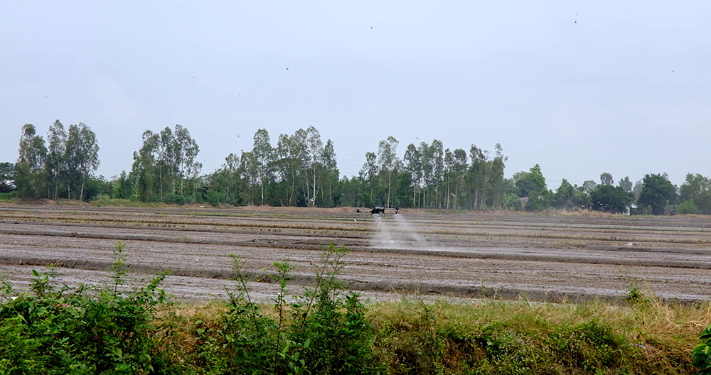 Nông dân TP Cần Thơ sử dụng thiết bị bay không người lái trong hoạt động sản xuất nông nghiệp.