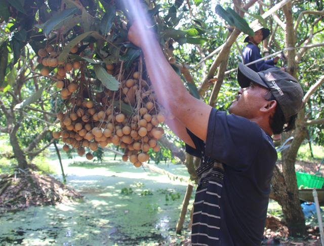 Nông dân trồng nhãn xã An Nhơn, huyện Châu Thành thu hoạch nhãn