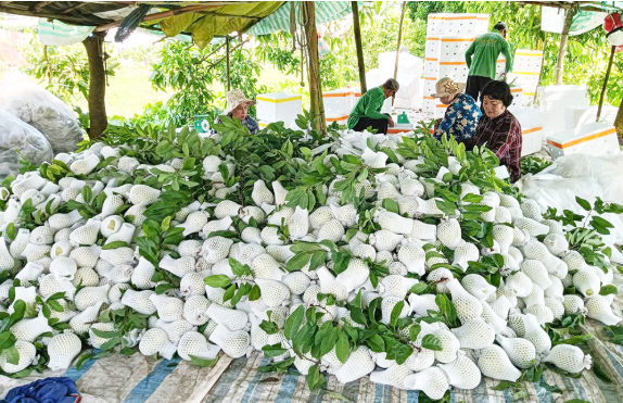Thành viên THT trồng na Thái vào vụ thu hoạch. Ảnh đơn vị cung cấp
