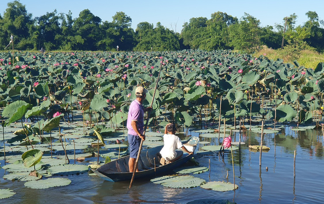 Trồng sen kết hợp với nuôi trồng thủy sản đưa lại thu nhập cao cho bà con nông dân. |