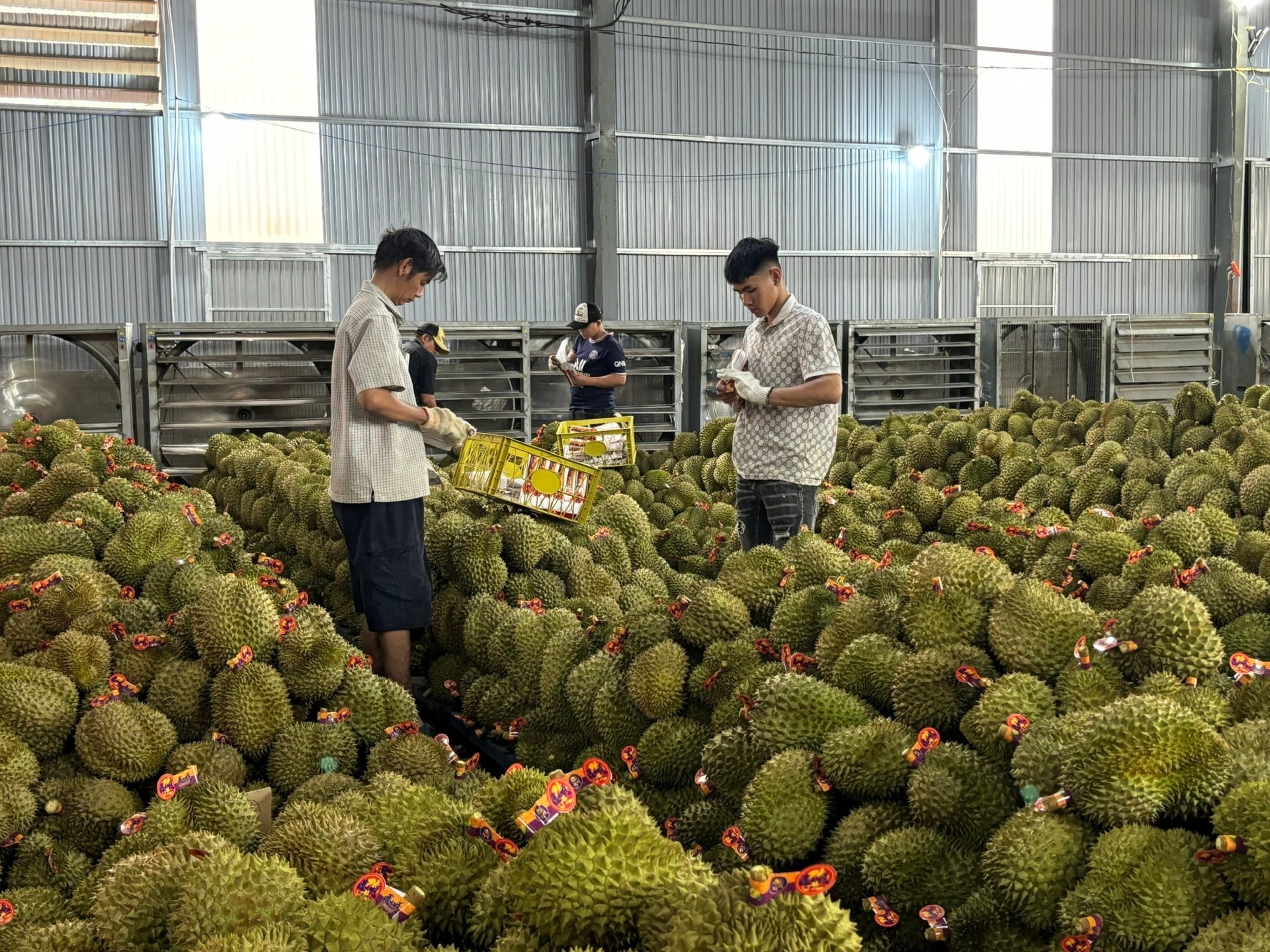 Những trái sầu riêng tươi chuẩn bị lên đường