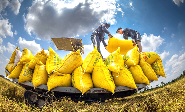Nhịp độ làm việc khẩn trương tại điểm cân lúa, từng bao lúa được kiểm tra kỹ lưỡng trước khi vận chuyển, mang theo bao kỳ vọng về một mùa bội thu.