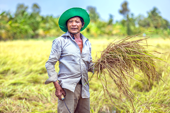 Khuôn mặt sạm nắng nhưng ánh mắt lấp lánh niềm vui khi cầm trên tay những bông lúa vàng - thành quả của bao ngày “bán mặt cho đất, bán lưng cho trời”.