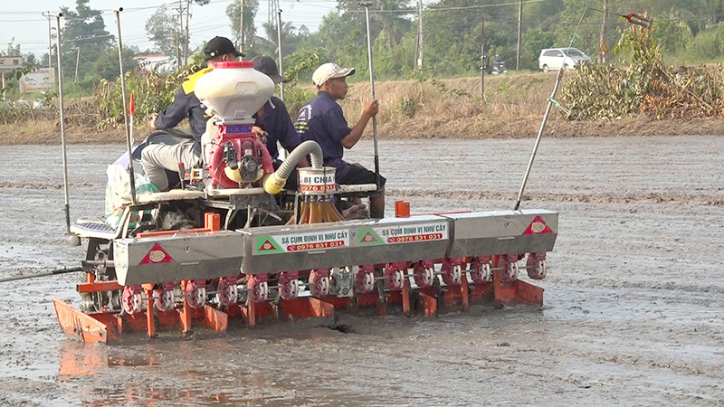 Nông dân huyện Lấp Vò triển khai mô hình sạ cụm kết hợp vùi phân bón, góp phần giảm chi phí sản xuất, nâng cao năng suất