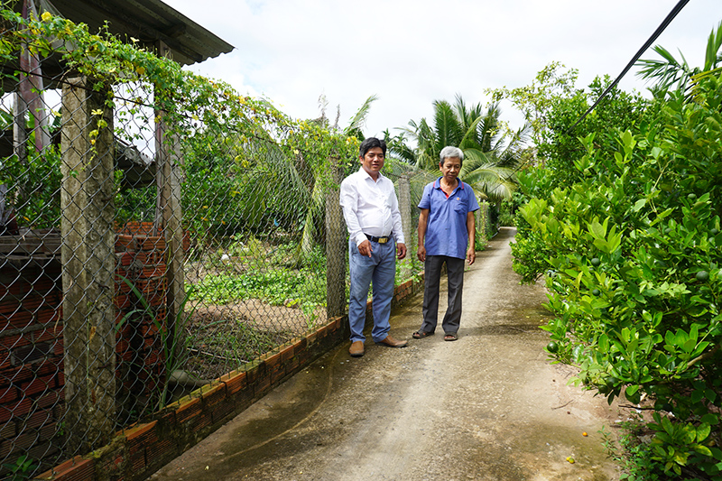 Đường Chùa Phật Mẫu (ấp Tân Thuận) được ông Võ Phước Hải (bìa phải) chia sẻ làm lối đi chung