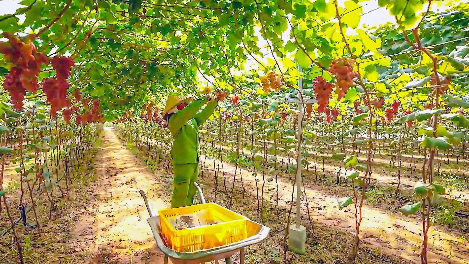 Nho ở trang trại được trồng theo tiêu chuẩn công nghệ cao của châu Âu (Ảnh: Ngọc Lân)