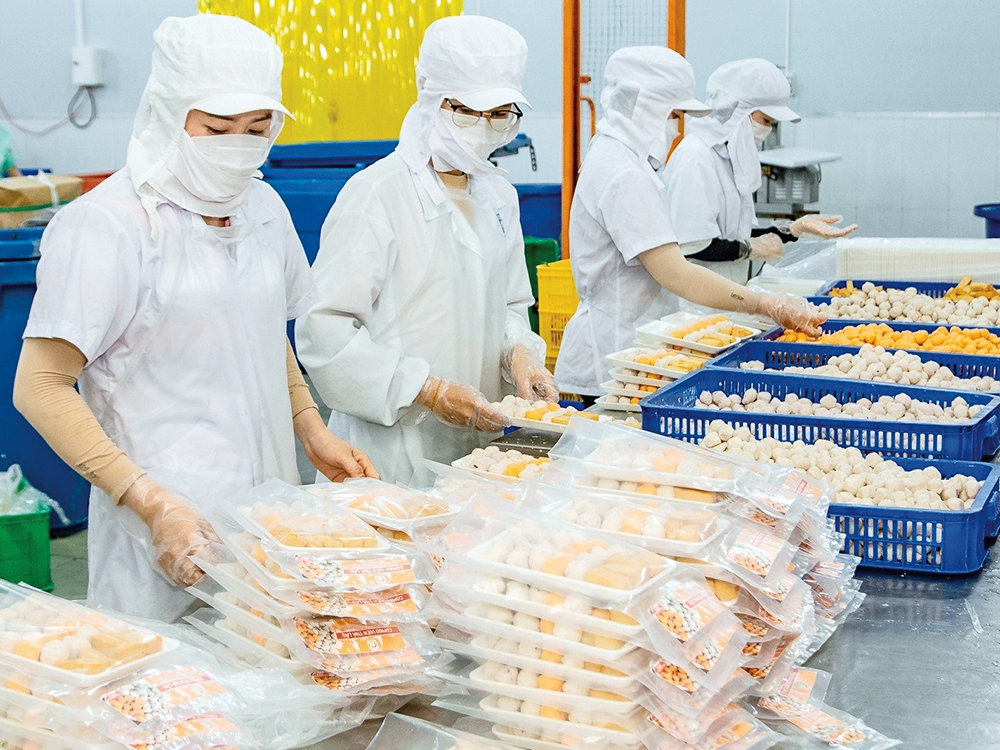 Hoạt động chế biến thủy sản tại xưởng sản xuất của HTX Sản xuất - Thương mại Nhất Tâm, ở Khu công nghiệp Trà Nóc 2.